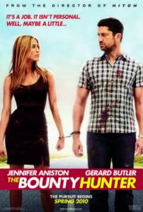 In an unlikely turn of the screw, bounty hunter Milo Boyd (Gerard Butler) has been hired for a bondsman named Sid (Jeff Garlin) to pick up a woman who has an outstanding arrest warrant. The twist is that Nicole Hurley (Jennifer Aniston) used to be Milo’s wife whom he has divorced in a bitter contest. Being a muckraker journalist working on a hot tip about the mob, she is feisty and hardly willing to be arrested, especially by a man she loathes. However, when Nicole runs afoul of the gangsters, Milo has to protect his quarry and return her safely to Atlantic City. In the meantime, they have an opportunity to reconcile while in hiding.
